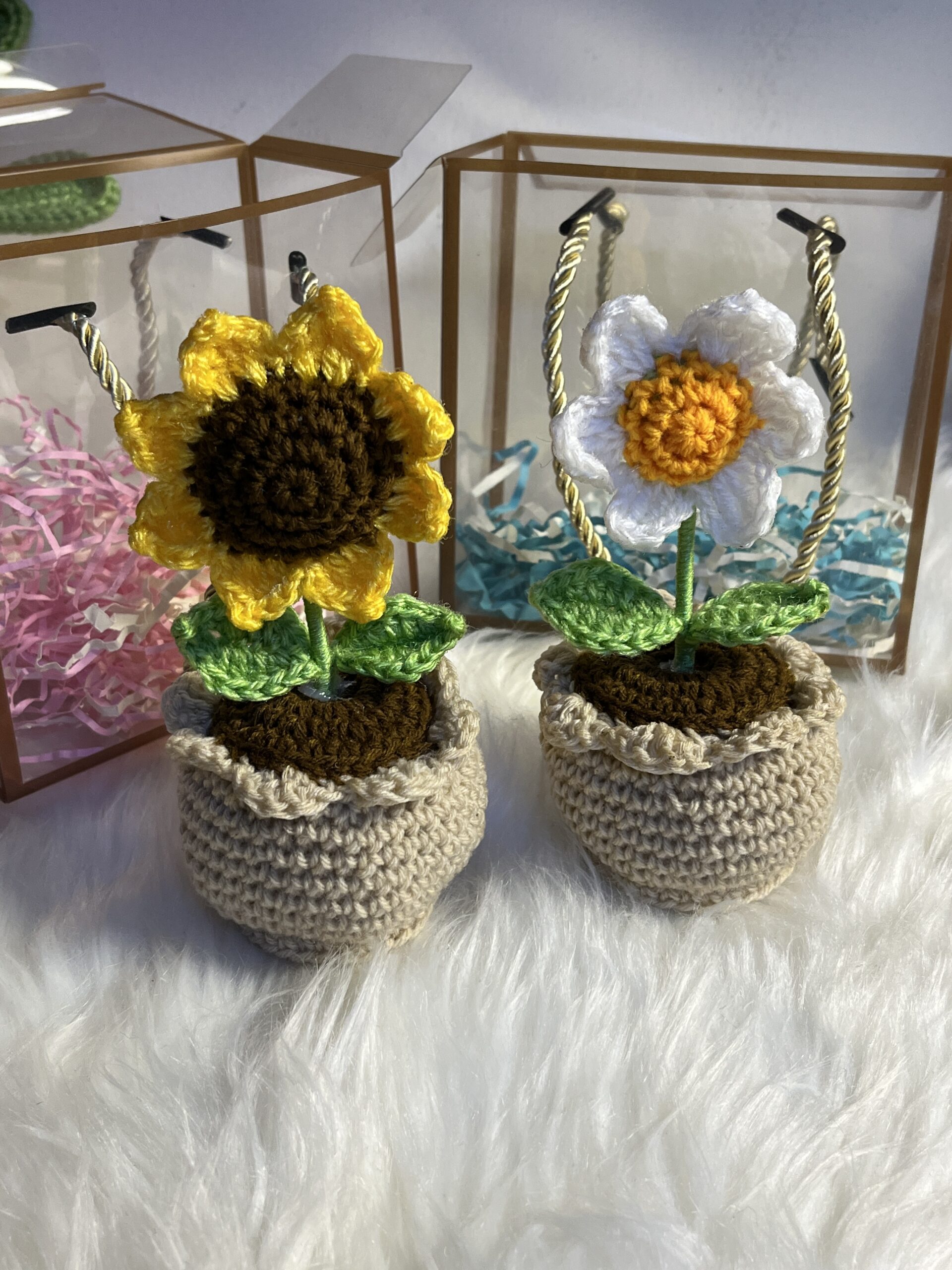 - 1 Flower pot – choose between a crochet sunflower or daisy